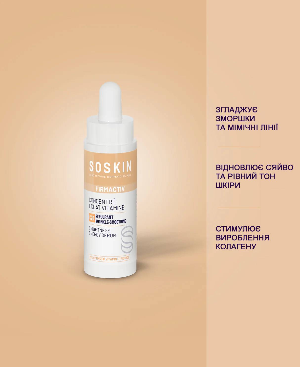 Сироватка-вітамінний коктейль, що поєднує в собі потужний пептид та антиоксиданти для стимулювання вироблення колагену, підтягування та помітного розгладження шкіри. З кожним днем мімічні зморшки та складки розгладжуються, текстура шкіри вирівнюється, а колір обличчя відновлює своє природне сяйво.