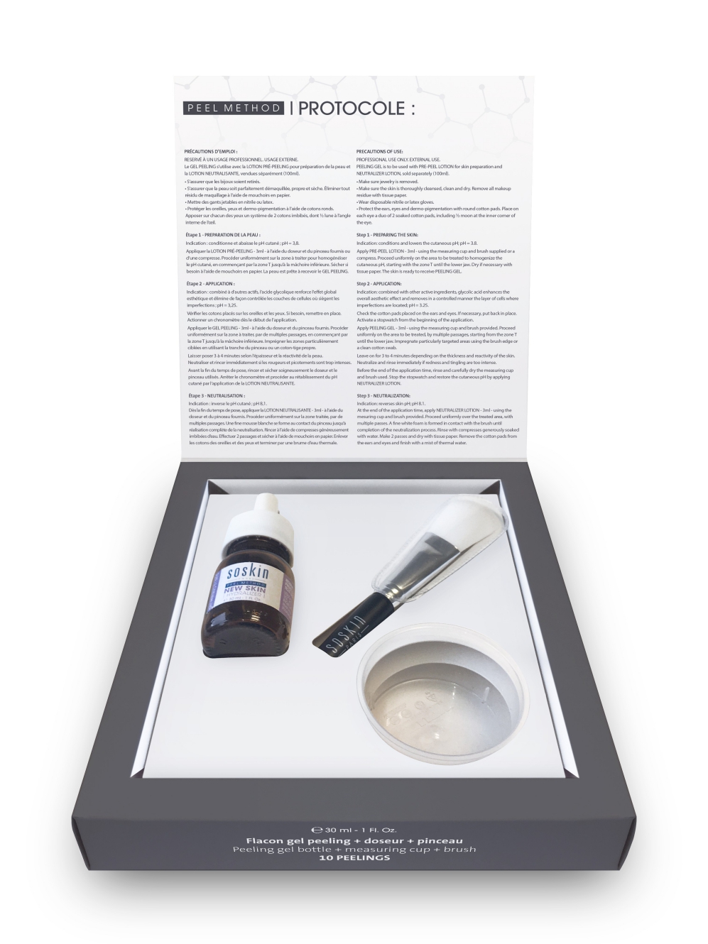 Гліколева кислота сприяє швидкому відновленню шкіри, розгладжує дрібну мережу зморшок, нормалізує pH і покращує колір обличчя. Азелаїнова кислота пригнічує білковий синтез бактерій, блокує активність 5-альфа-редуктази, що призводить до зниження рівня дегідротестостерона і зменшення активності сальних залоз. Фітинова кислота забезпечує виражений антиоксидатний ефект, забезпечує інактивацію ферменту тирозинази, запобігаючи появі пігментних плям.