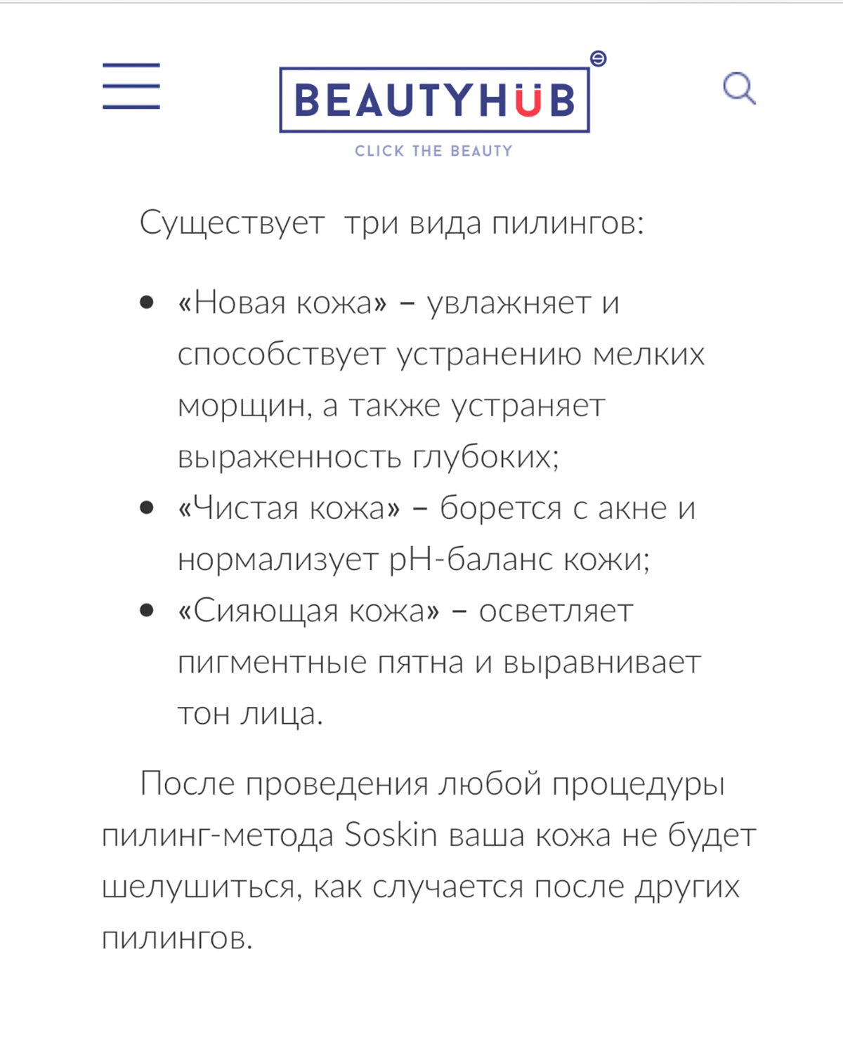 После проведения любой процедуры пилинг-метода Soskin ваша кожа не будет шелушиться, как случается после других пилингов.